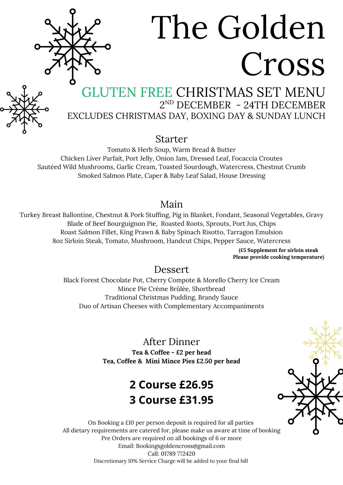 We do not have a separate Vegan or Gluten Free Menu as we pride ourself in creating dishes for you using the freshest Ingredients we have available on the day. Please make us aware on booking & we will ensure we have a menu for you.
