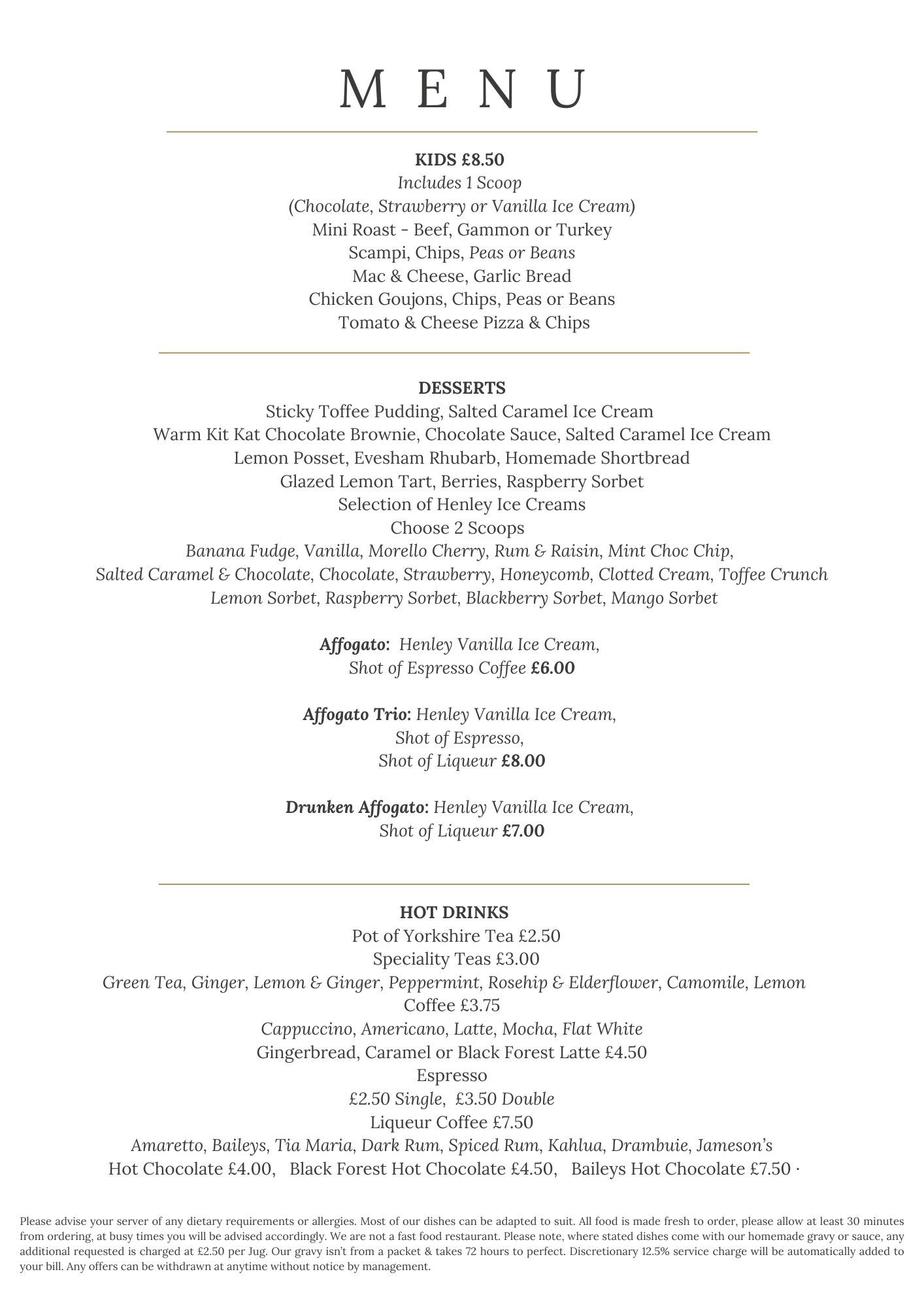 Our Menus change on a regular basis usually around 6 weeks so we can provide you with the freshest and seasonal ingredients.